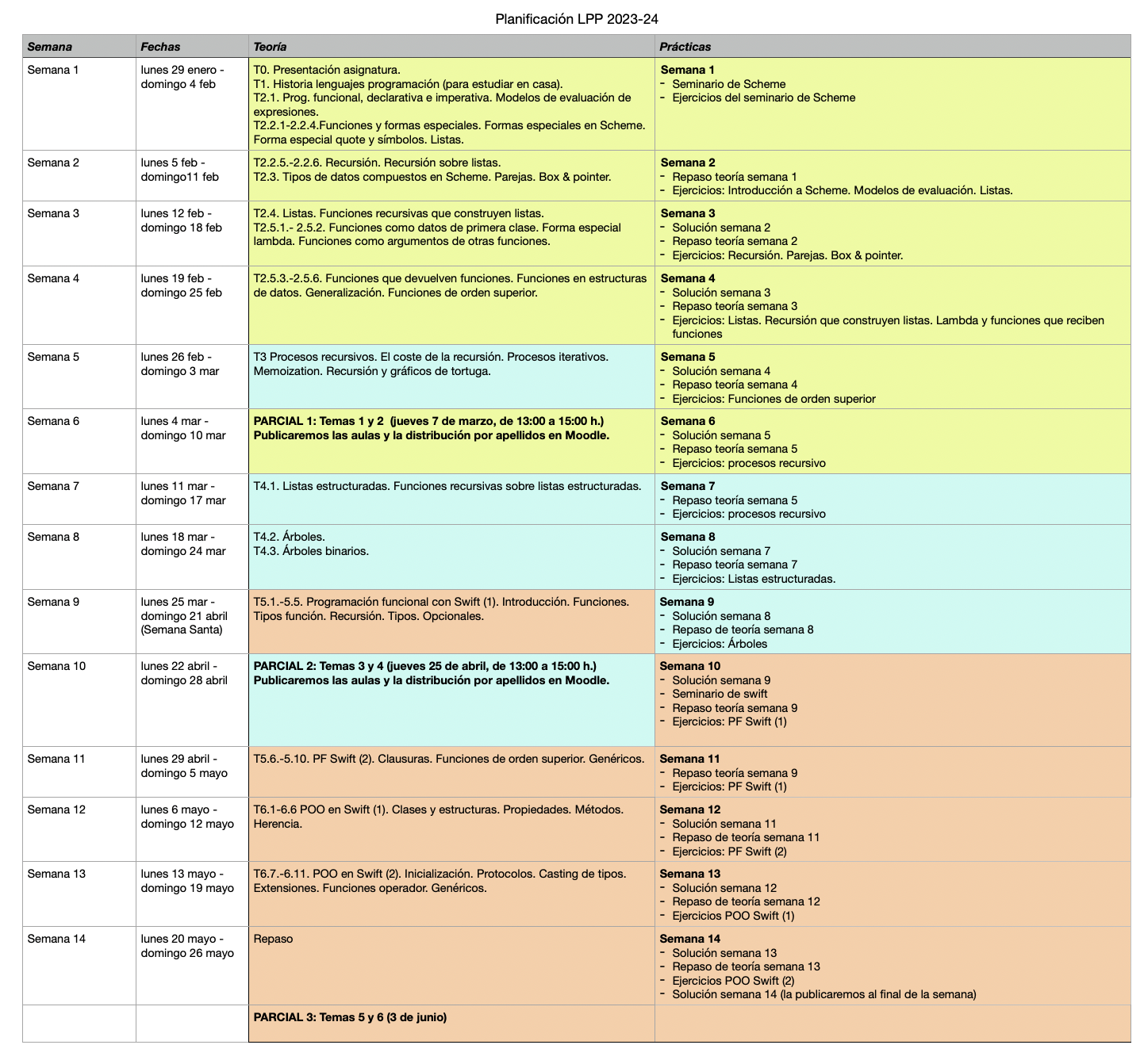 Planificación de la asignatura