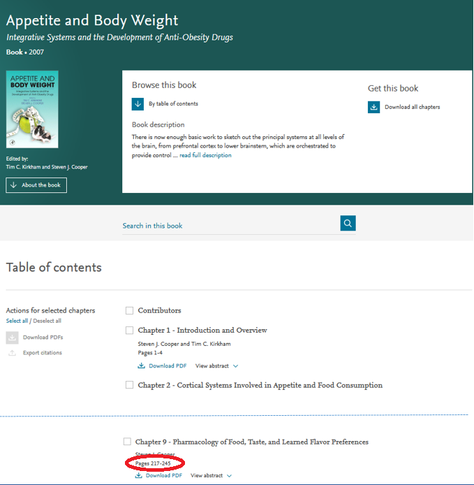 COOPER, Steven J. Pharmacology of Food, Taste and Flavor Preferences. En Tim C. KIRKHAM y Steven J. COOPER, eds. Appetite and Body Weight. Nueva York: Elsevier, 2007, pp. 217-245 [consulta: 3 de julio de 2018]. ISBN 978-0-12-370633-1. Disponible en: https://www.sciencedirect.com/science/article/pii/B9780123706331500098
